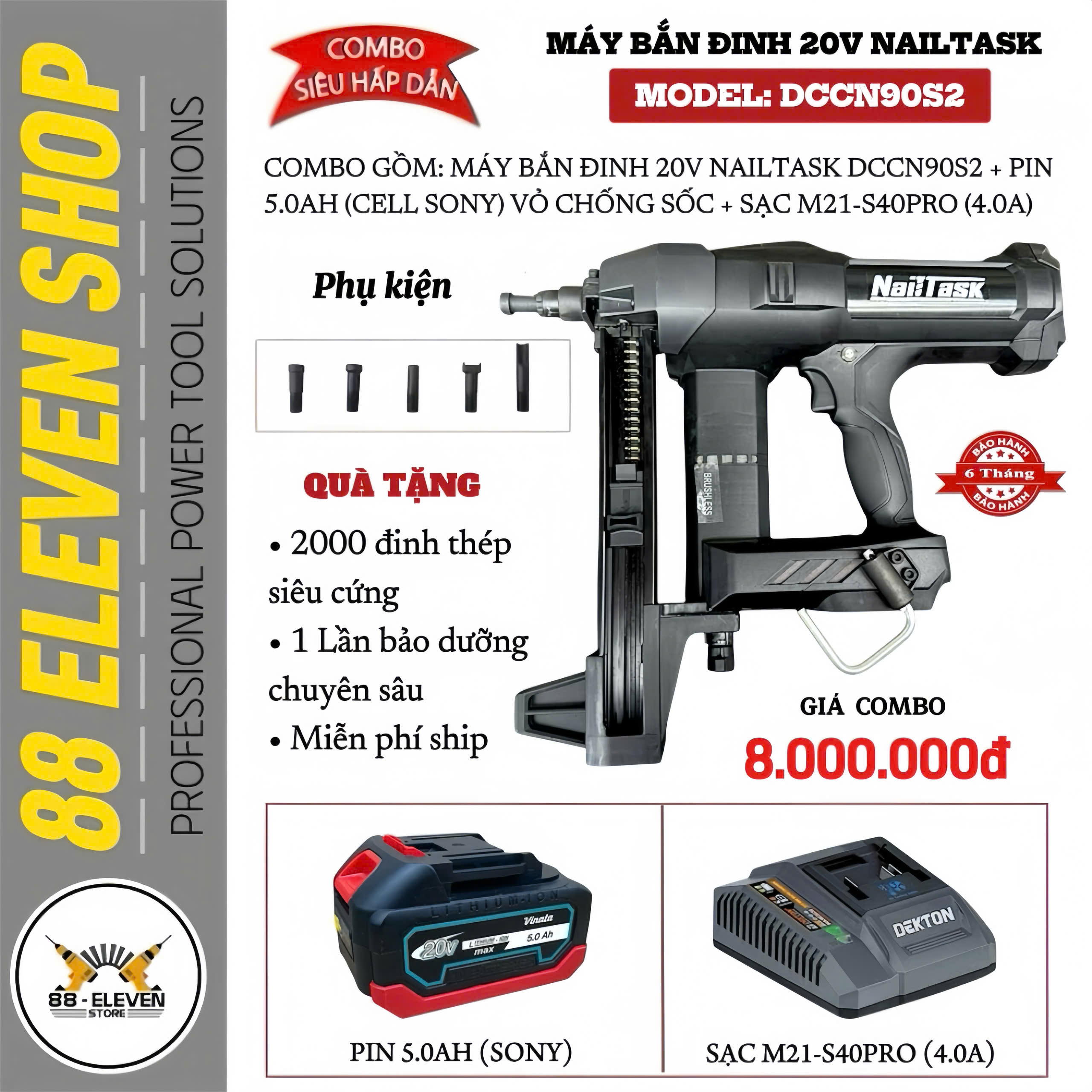 Combo Máy Bắn Đinh Bê Tông 20V Nailtask DCCN90S2
